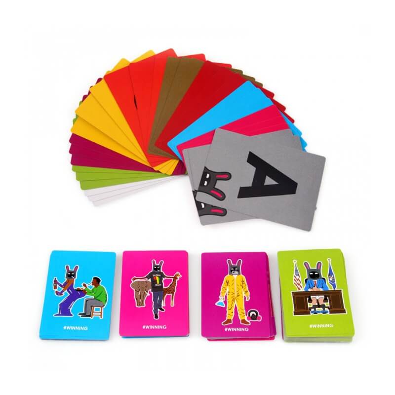 The first player to get 10 #WINNING cards wins.