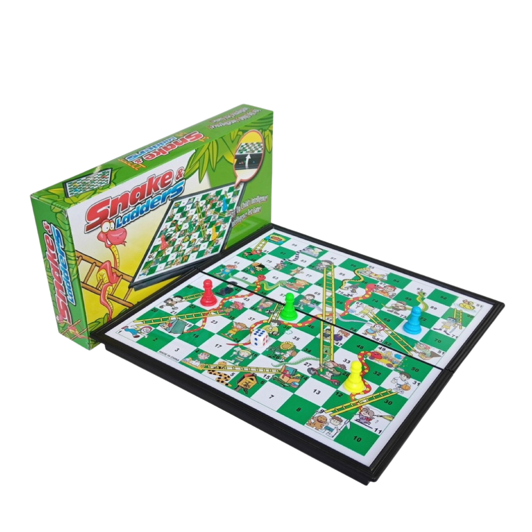 - 🐍[ TRAVEL BOARD GAME-STRONG MAGNETIC] – Our strong magnetic Pins keep all your game pieces in place. Even if accidentally bumped, your snakes and ladders board game will stay put.
